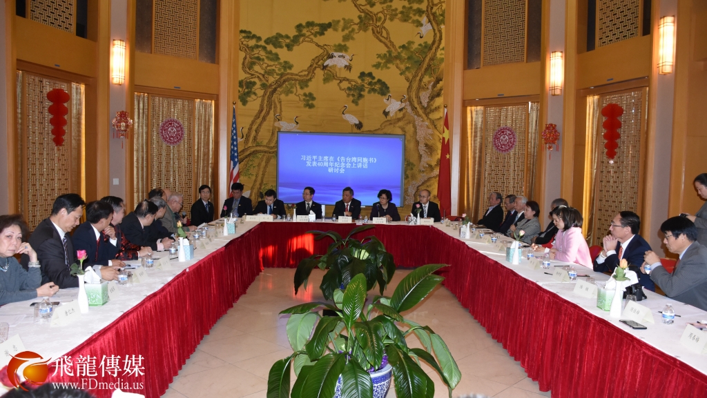 休斯敦大学政治学教授李坚强从历史和当前法律的角度做了主题为“从美国看中国统一的前景:读习近平主席纪念《告台湾同胞书》发表40周年的讲话有感”的讲演。与会代表也纷纷发表自己的看法,并就两岸关系及发展给出了很多建议。