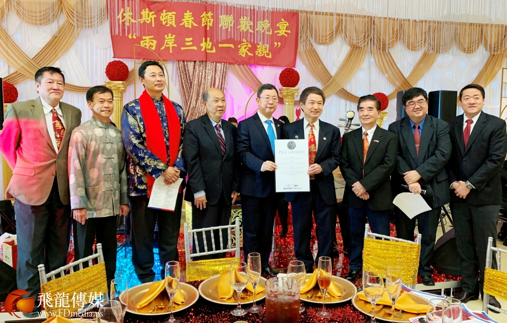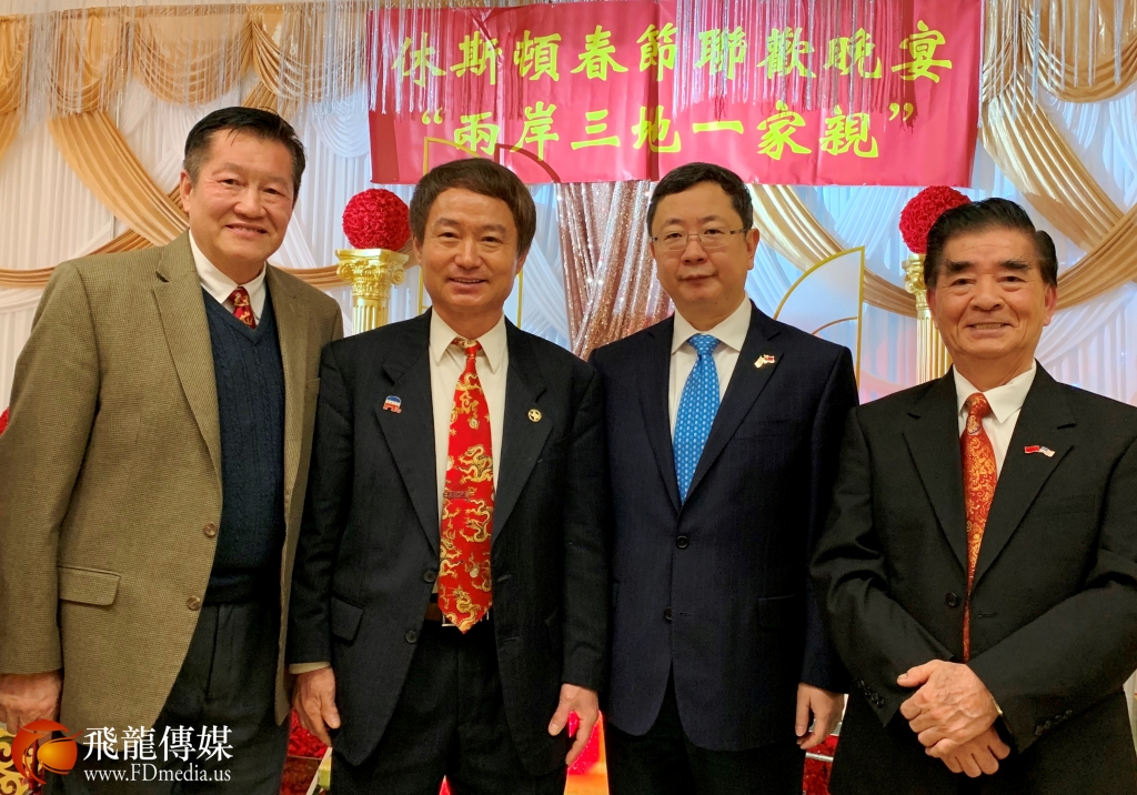 2月2日,由德州中国和平统一促进会、休斯敦中国和平统一促进会、中美友好协会等共同主办的“两岸三地一家亲”春节联欢会在休斯敦举行。中国驻休斯敦总领馆王昱副总领事、德州Staff市议员候选人谭秋晴、Shiela Jackson Lee的代表罗玲、德州议员吴元之(Gene Wu)、全美和统会联合会秘书长吴惠秋、德州中国和平统一促进会会长浦浩德等嘉宾,及台湾同胞、香港同胞、休斯敦各界代表250人出席联欢会。