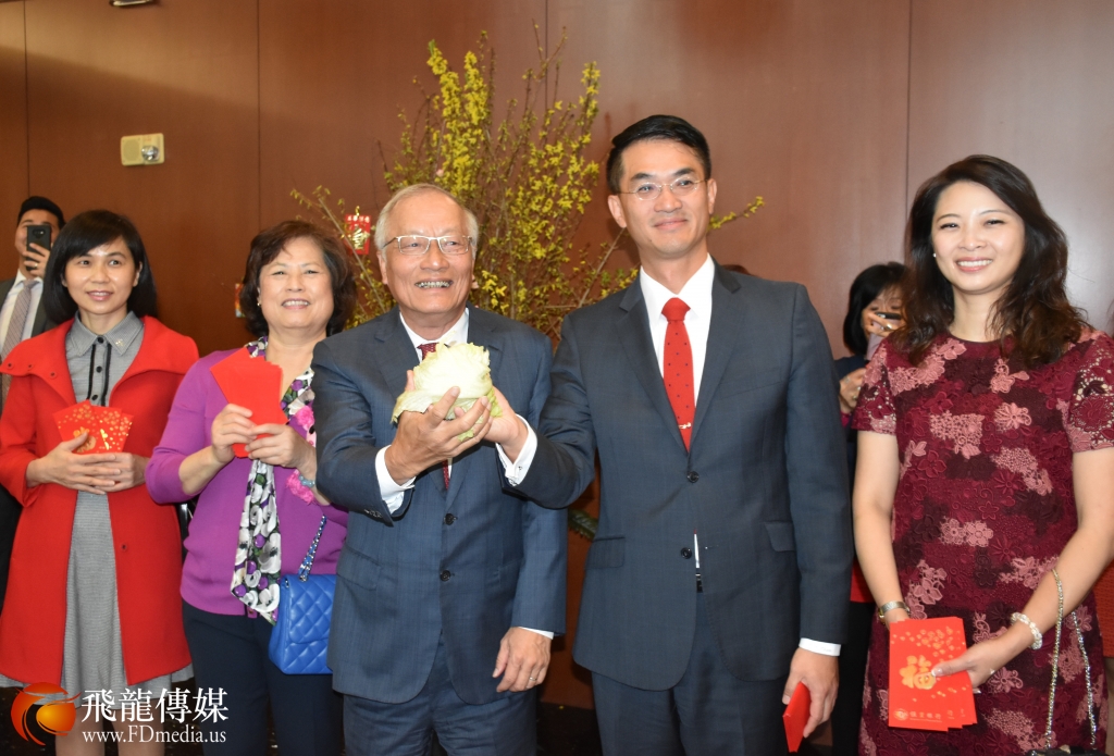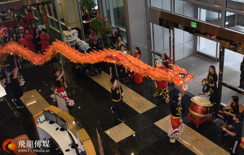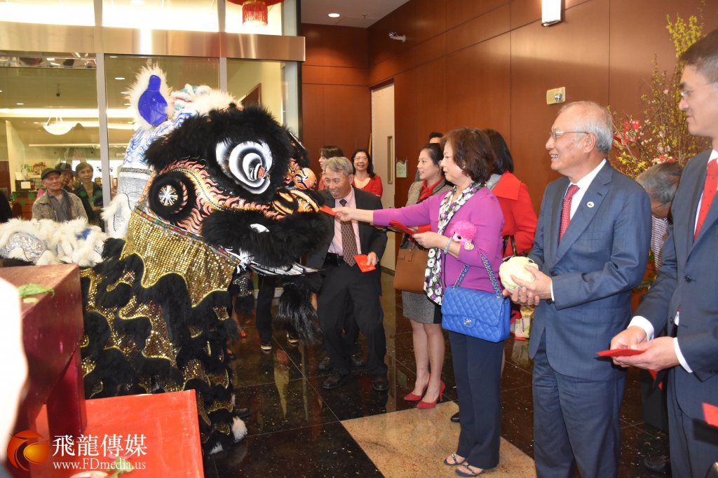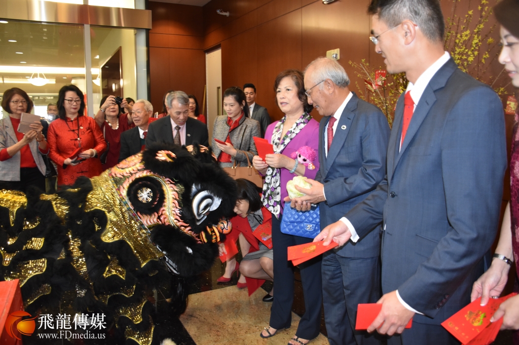2月5日大年初一上午9点, 恒丰银行在休斯敦总部大楼举行舞龙舞狮庆新年活动,向一直支持恒丰银行的广大华侨华人拜年,吴文龙董事长携夫人及董事们向在场的老人、小孩、记者发红包,现场一片欢声笑语,充满年味。