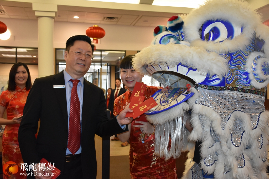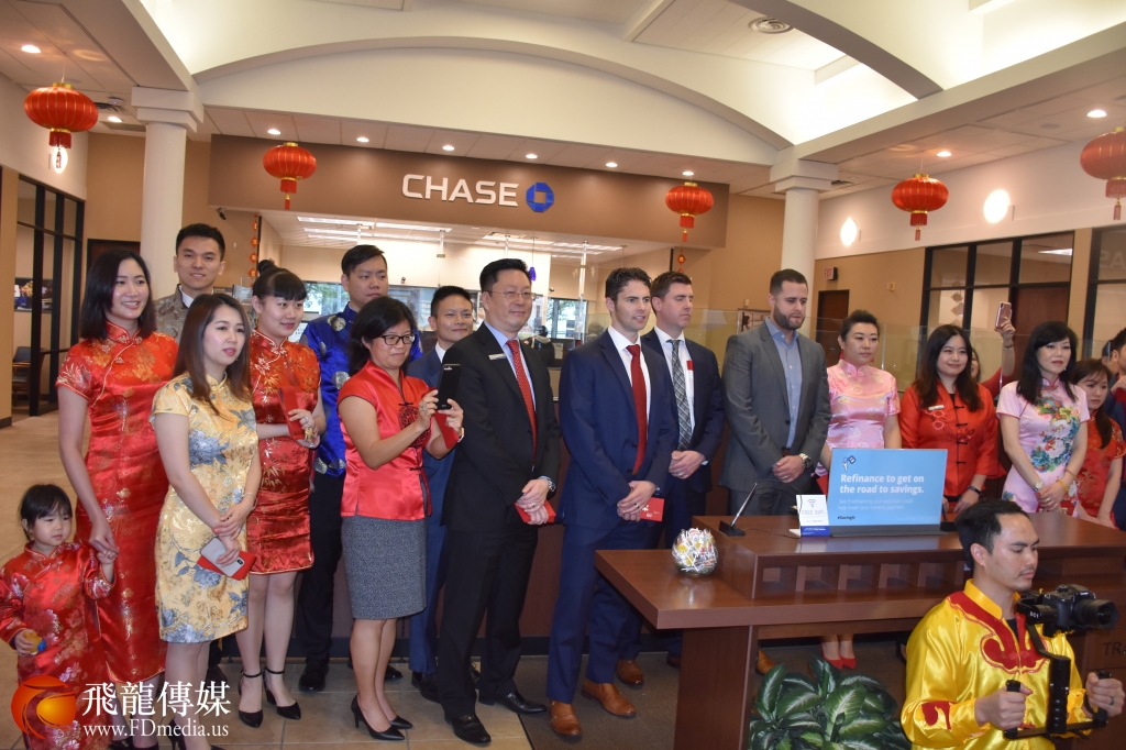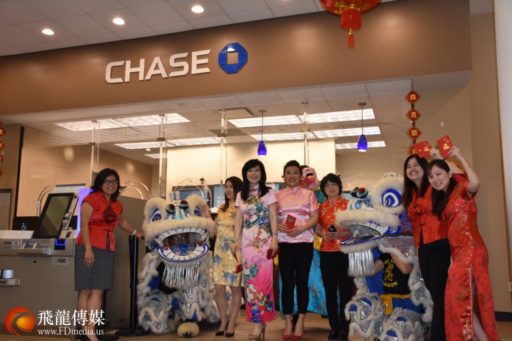 2月5日大年初一上午, 休斯敦中国城热闹非常,各大银行舞龙舞狮庆祝农历新年。位于中国城的大通银行(Chase Bank)分行入乡随俗,每年大年初一舞龙舞狮庆祝中国新年。