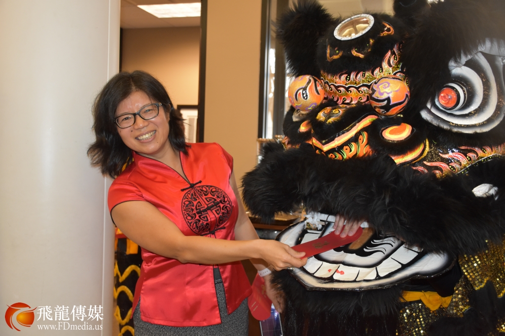大通银行中国城分行经理Billy Yeh给醒狮团发红包。