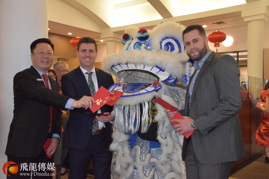 大通银行负责人Casey先生、Adam先生和中国城分行经理Billy Yeh现场发红包。