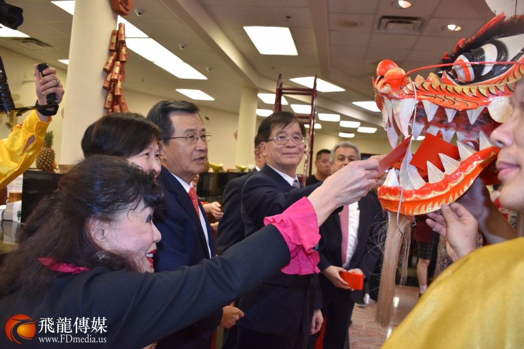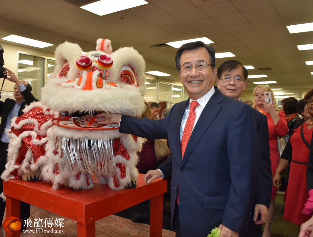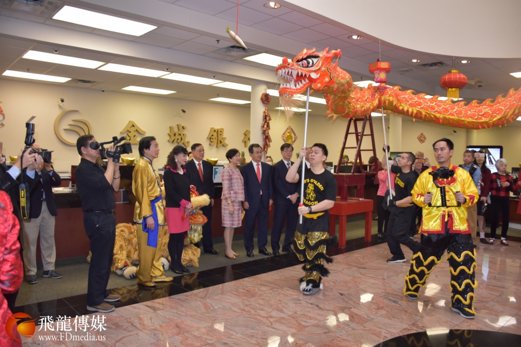 2019年 2月5日农历大年初一, “龙腾虎跃迎新年、诸事顺利贺岁里”休斯敦金城银行内锣鼓喧天,喜气洋洋。每年最重要的迎新春庆新年活动正在进行,舞龙舞狮带来一片祥和与喜庆。董事长吴光宜、总经理黄国梁、休斯敦斯坦福市议员候选人谭秋晴莅临现场给华侨华人拜年。