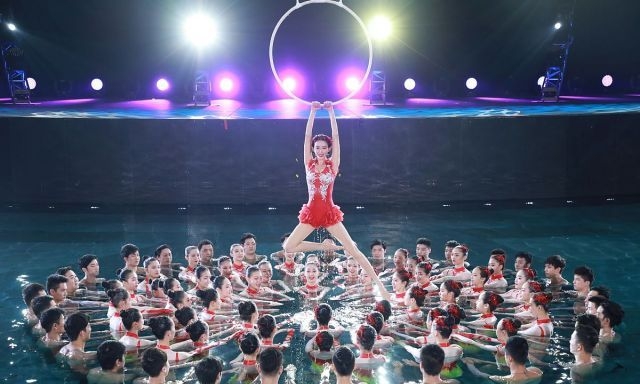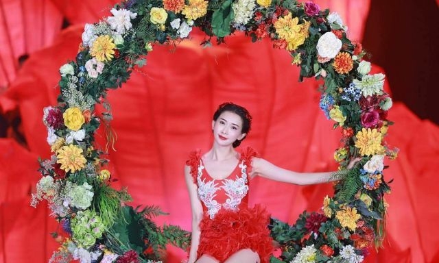 已经44岁的林志玲,在舞台上跳完芭蕾,就从花环上高空跳水了,入水后开始表演花样游泳,这个节目如此专业,她自己能做到吗?