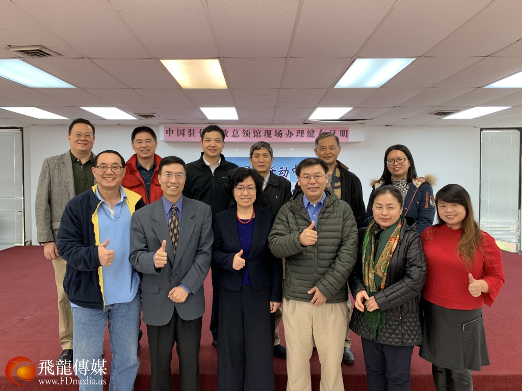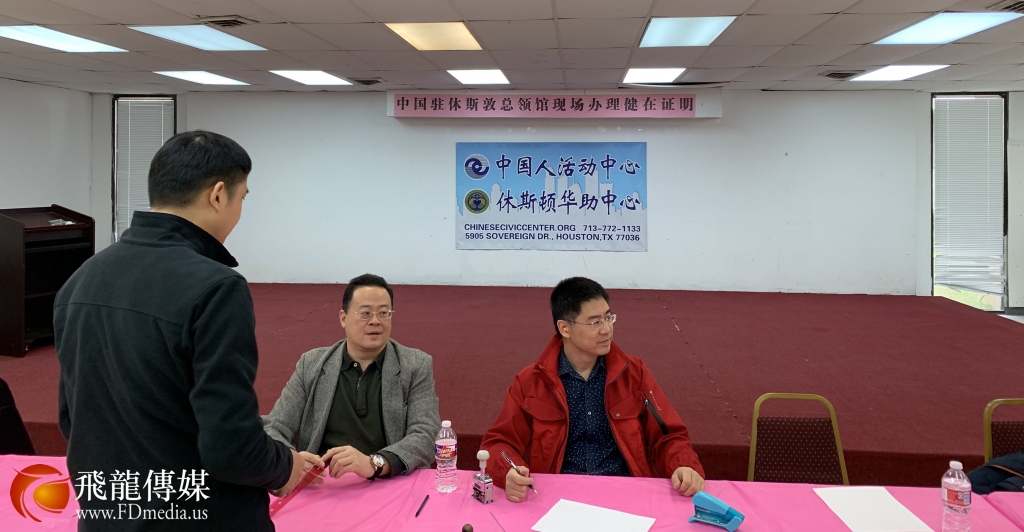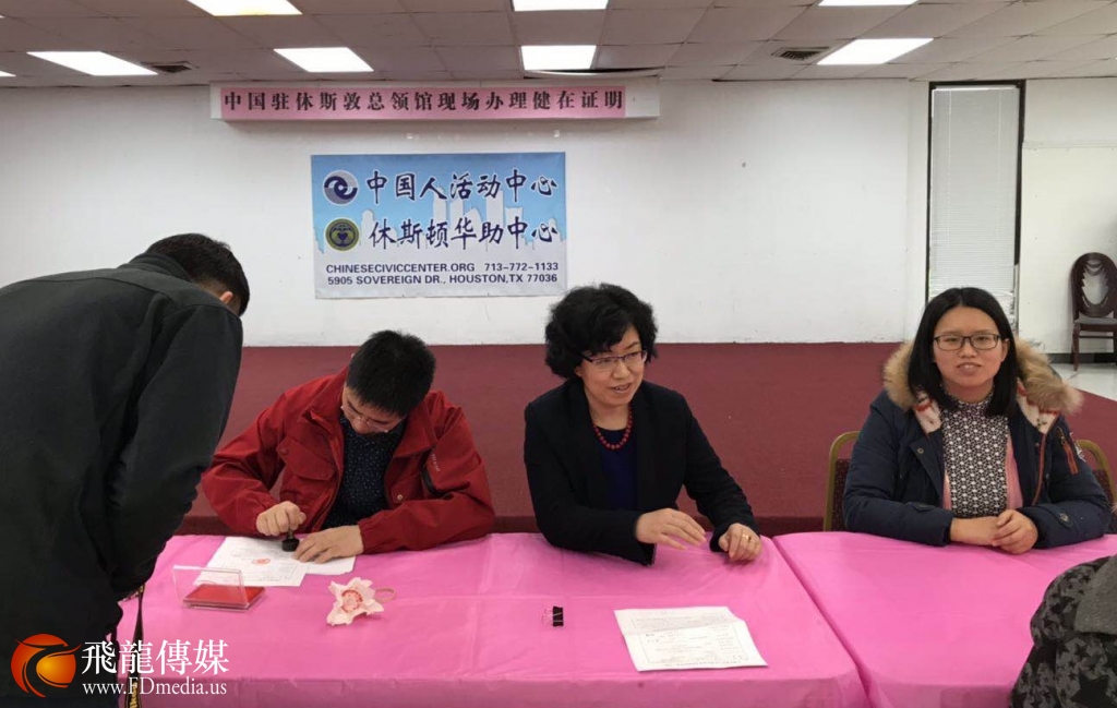 中国驻休斯敦总领馆于2019年2月10日(星期天)上午10:00-11:00赴休斯敦中国人活动中心130大厅,为侨胞现场办理《在境外居住人员领取养老金资格审核表》(即“健在证明”),这是总领馆为广大侨胞服务,落到实处的又一体现。中国人活动中心,休士顿华助中心积极协助了这次活动。总领馆刘红梅付总领事亲自到场为老侨胞们办理健在证明。中国人活动中心董事长靳敏博士和执行长范玉新博士也亲临现场支持。中国人活动中心执委倪大刚,黄华,娄琢明,杨德清,刘涛等也到现帮助老人们拿号,填表,复印和维持秩序。在大家的共同努力下,一百多号人的"健在证明"在2个小时内就全部完成了。效率之高,得到老侨胞们的一致好评。