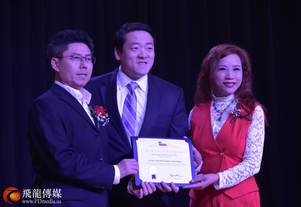 中国驻休斯敦总领馆刘红梅副总领事伉俪、美国国会议员Al Green、德克萨斯州州议员吴元之、国会议员希拉.杰克森.李亚裔代表罗玲、国会议员Pete Olson 亚裔助理张晶晶、斯坦福市议员候选人谭秋晴、美南报业集团董事长李蔚华伉俪、休斯敦各大社团负责人,及江苏老乡350多人参加了联合会。大家欢聚一堂共庆新春佳节,齐许2019诸事大吉,同祝中美世代友好,祝愿祖国(祖籍国)繁荣昌盛。