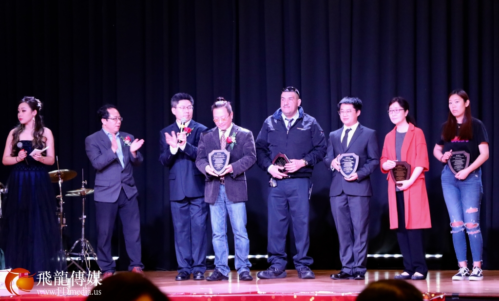 联欢会上最温暖的一刻,为中国城自发的保安队颁发奖牌,感谢他们为保护中国城的安宁做出的贡献。