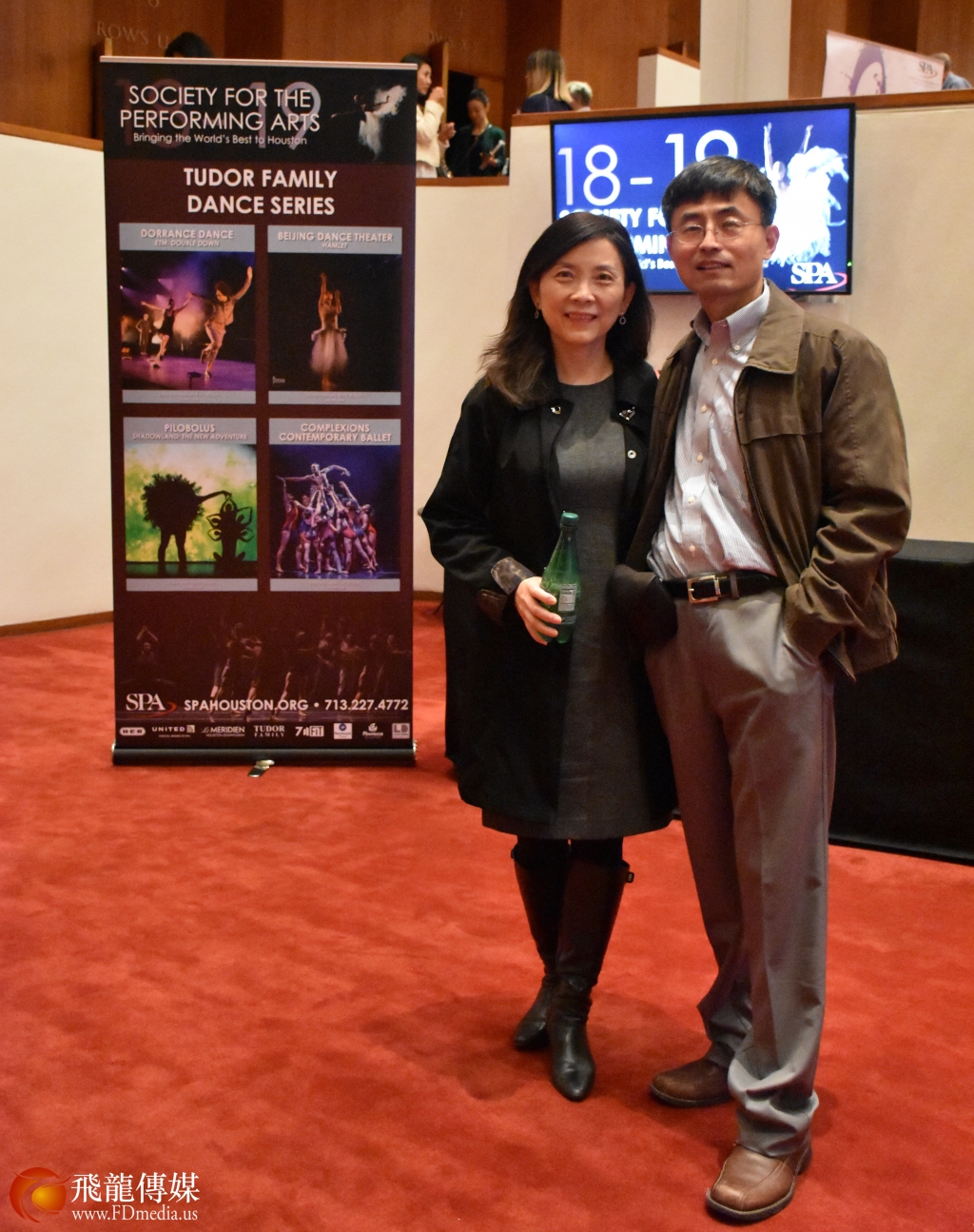 飞龙传媒特约记者 李嘉夫妇观看演出。