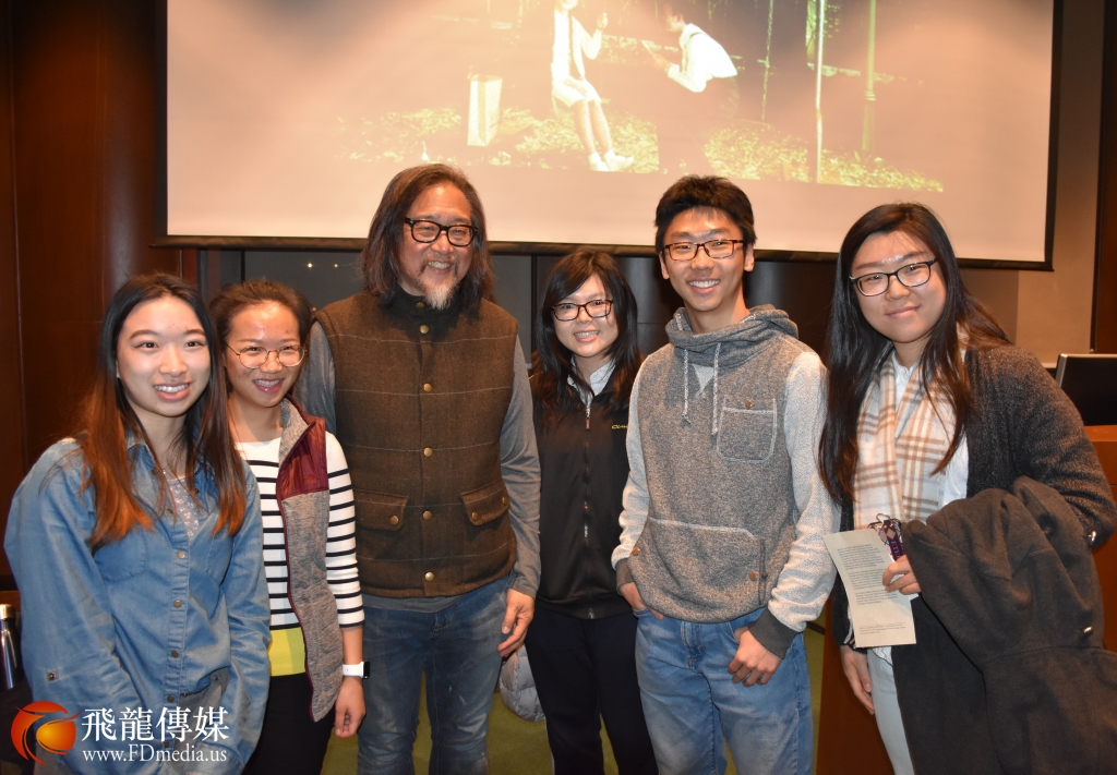 Rice 大学的学生拿着节目单请赖声川导演签名,并合影留念。