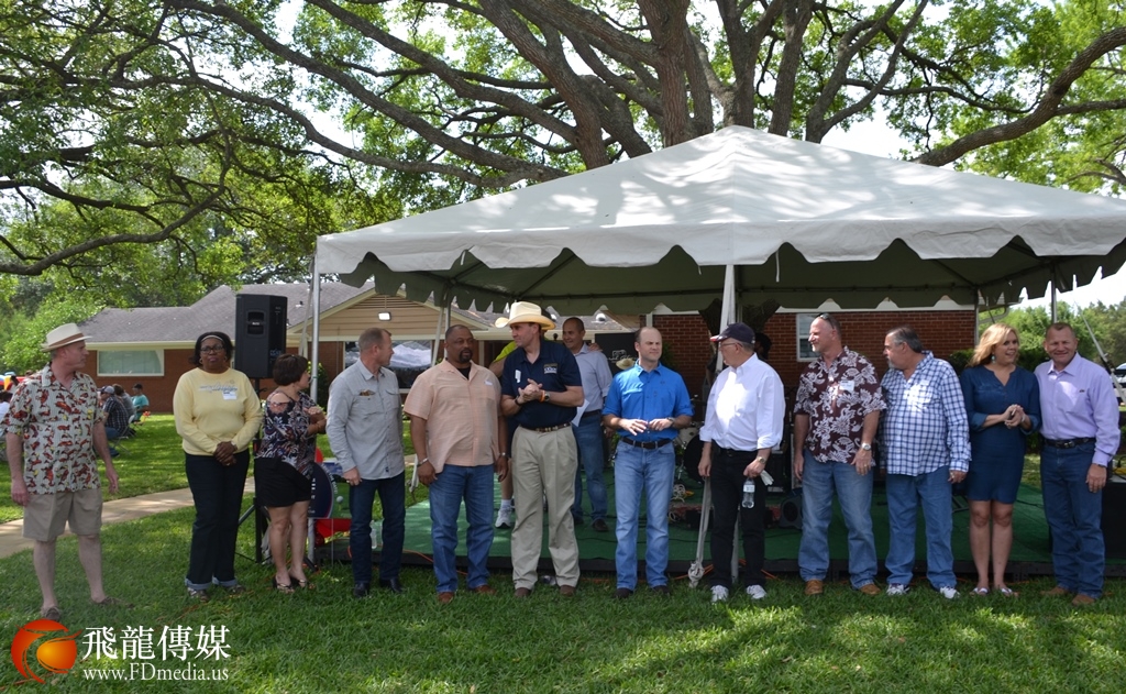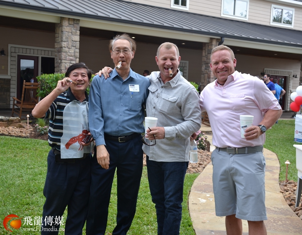 华商Geotest 土木工程公司应邀参加庆祝活动,Geotest公司也是庆祝派对的赞助商之一。公司负责人Frank Lin先生、福遍侨湾社社长、福遍共和党委员浦浩德先生、台湾乡亲联谊会会长刘志恒先生参加派对与大家热情聊天,共享美食。他们为华人融入美国主流默默的奉献着自己的力量,架起与主流社会沟通的桥梁。福遍区警察局局长Troy E. Nehls把得来的雪茄与华人兄弟一起分享。