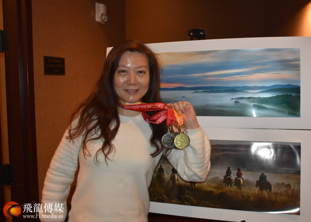 何煜春第一次参加比赛,荣获新人最佳作品奖,会长关本俊亲自为她颁奖。