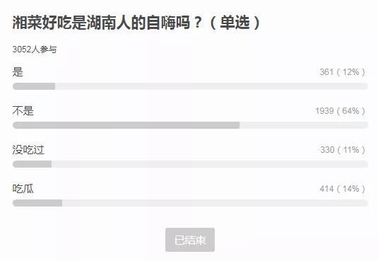 豆瓣上有一个投票我觉得蛮有意思。当然结果和我想象中的差不太多,作为坚定的湖南菜党,我相信选“不是”的人肯定远远大于“是”。