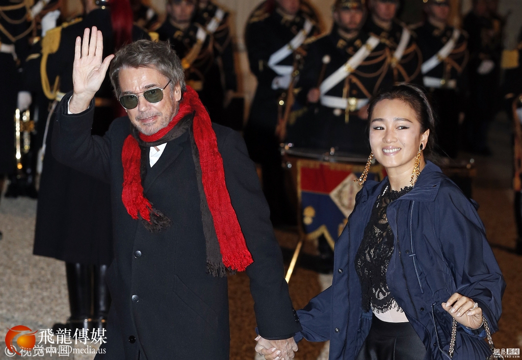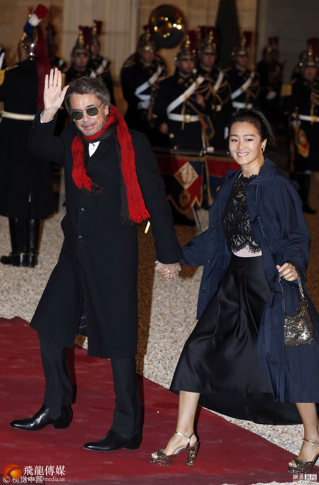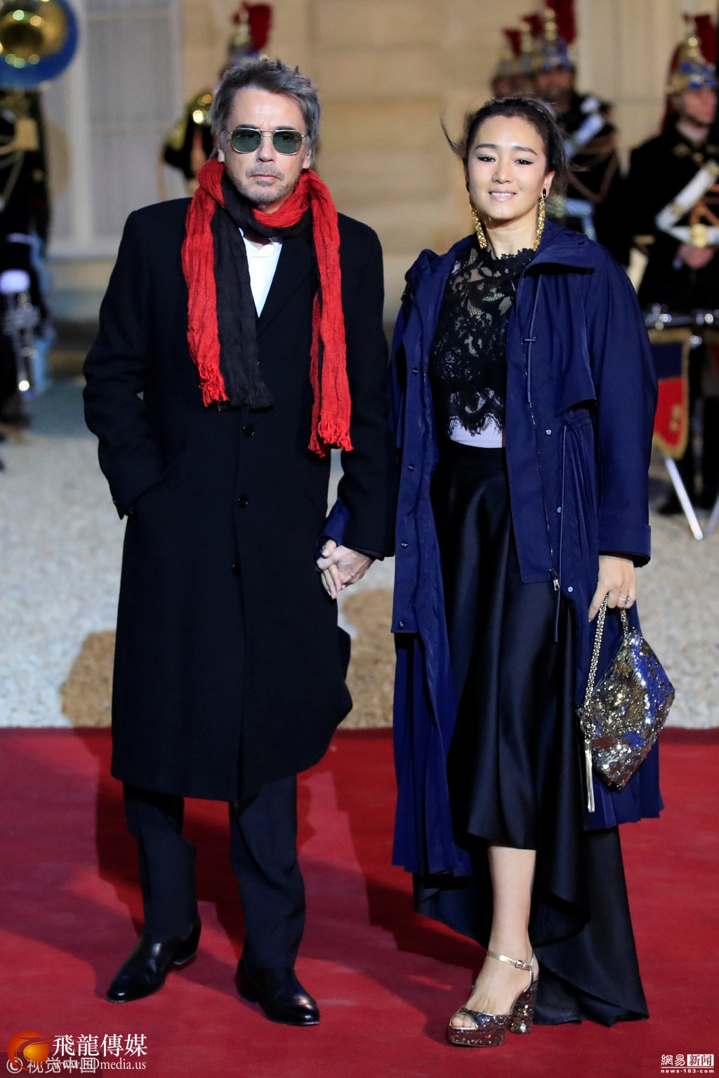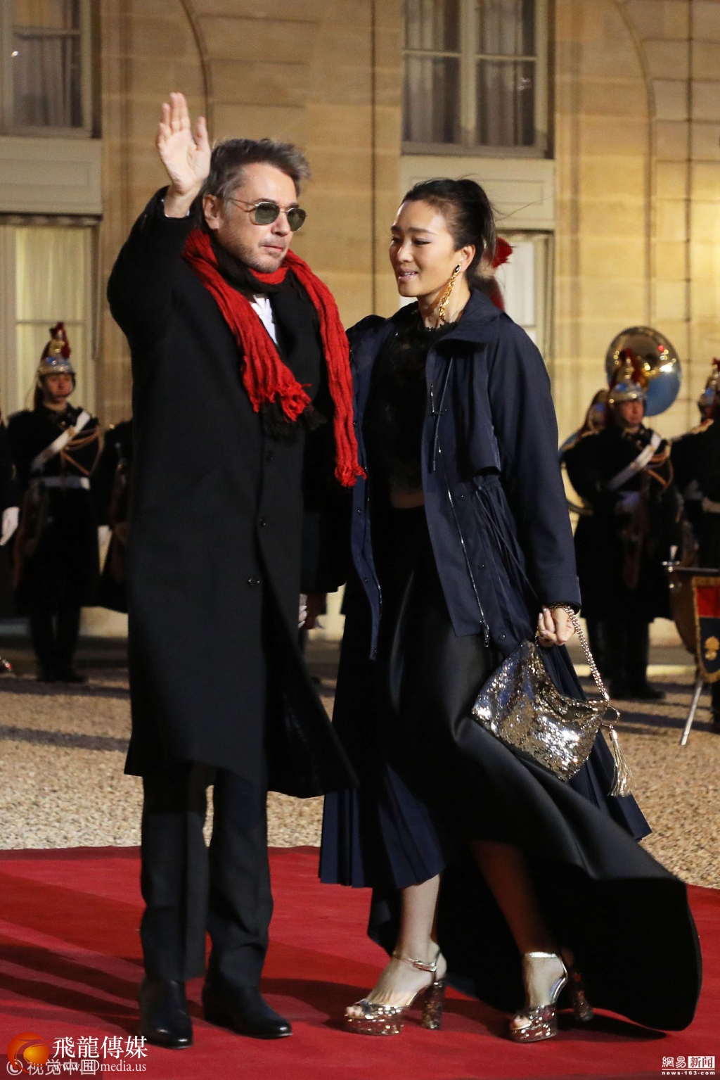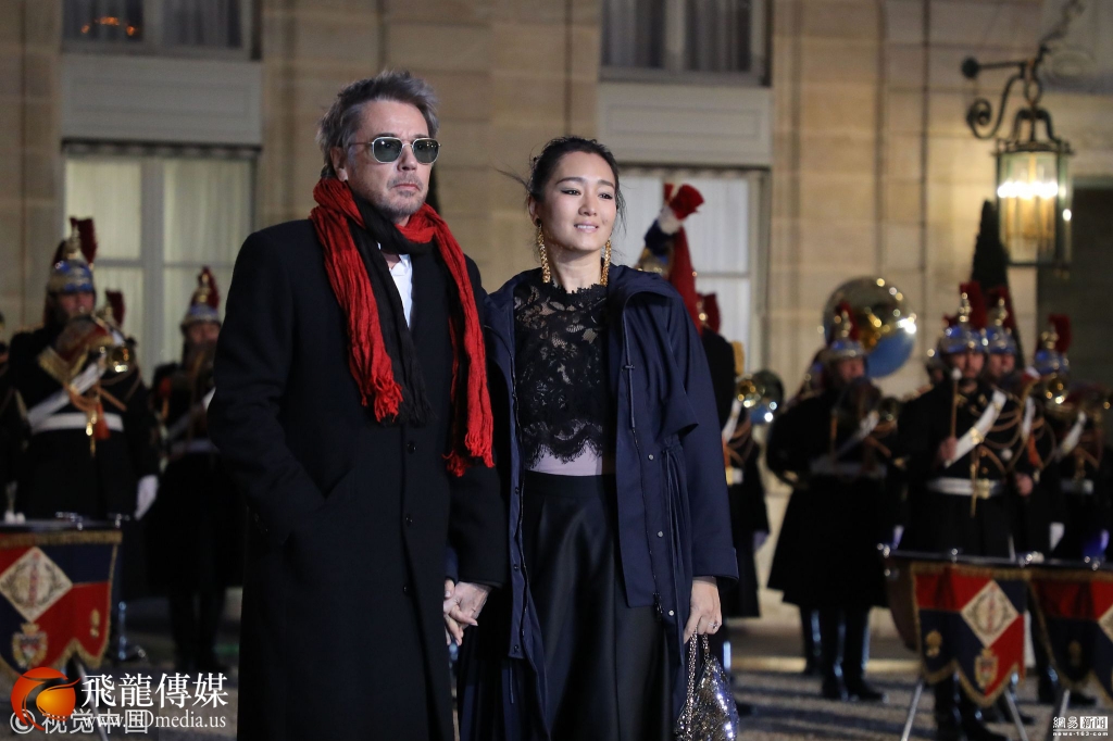 当地时间2019年3月25日,法国巴黎,法国总统马克龙在巴黎爱丽舍宫举行欢迎宴会。法国演奏家让-米歇尔·雅尔、华人演员巩俐、法国演员阿兰·德龙、法国前外交部长法比尤斯等受邀出席。