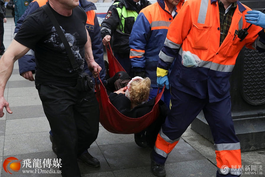 “先纳亚广场”地铁站爆炸事件的伤员被抬出。