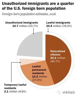 2016年,约有2800万移民在美国工作或寻找工作,约占全国劳动力总数的17%。合法移民占移民劳动力的大多数,为2060万。此外,还有780万名移民工人是未经许可的移民,这是自2006年以来的第一次,人数明显低于800万。仅他们就占了全国劳动力的4.8%,与2007年的5.4%的峰值相比有所下降。在同一时期,美国的劳动力总量在增长,美国出生的工人和合法移民工人的数量也在增长。