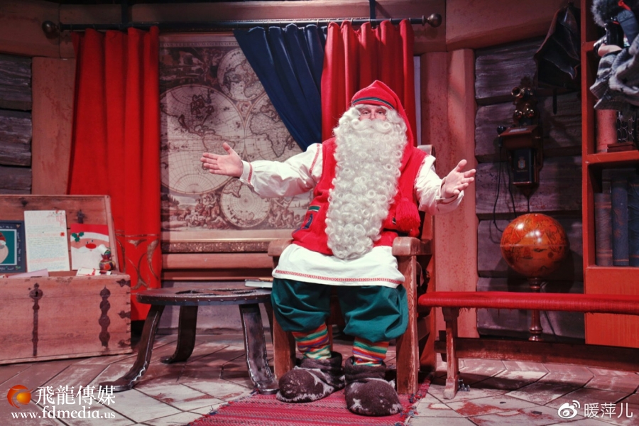 和大多数一样,我们进村直奔圣诞老人办公室。办公室布置得像一间小小的起居室,里面有满满的圣诞装饰以及一位红衣小精灵。胖胖的圣诞老人,跟每个人都热情的寒暄,聊天时还会自带伴奏他标志性的大笑声。和圣诞老人聊天免费,不过合影的照片是收费的,40欧/张,也可以额外付费加选照片装饰。