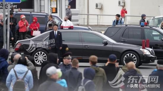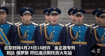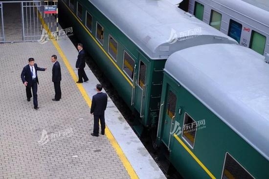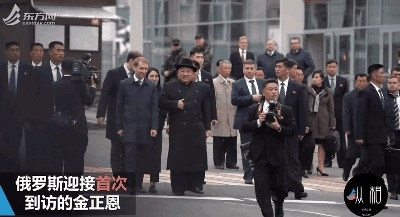 北京时间16时许,金正恩专列到达俄罗斯符拉迪沃斯托克火车站,两节红色俄罗斯车头 ,后面跟着绿色黄条纹金正恩专列。朝俄双方官员已在红毯两旁等待多时,金正恩在人群拥簇中下车。