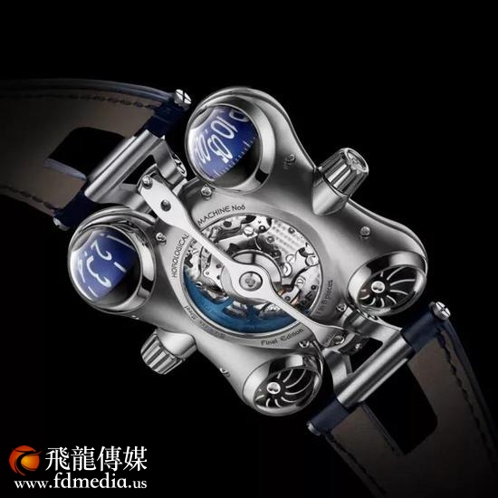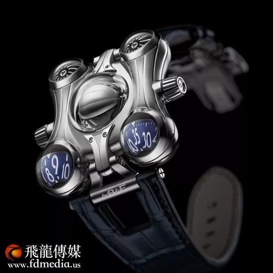 如果有一位痴迷腕表的英雄,那一定非好品味的钢铁侠莫属了。他既是大公司的董事长,自我中心的花花公子,又是电子工业的奇才,骁勇善战的斗士,收藏的腕表中自然少不了来自MB&F的机械遗产。HM6的设计灵感来自宇宙飞船,其结构核心是飞行陀飞轮,由开闭式防护罩保护,正如钢铁侠的动力装甲。小时和分钟球体以垂直角度呈现,方便判读时间,另一端被设计成双涡轮,为飞船提供源源不绝的动力。