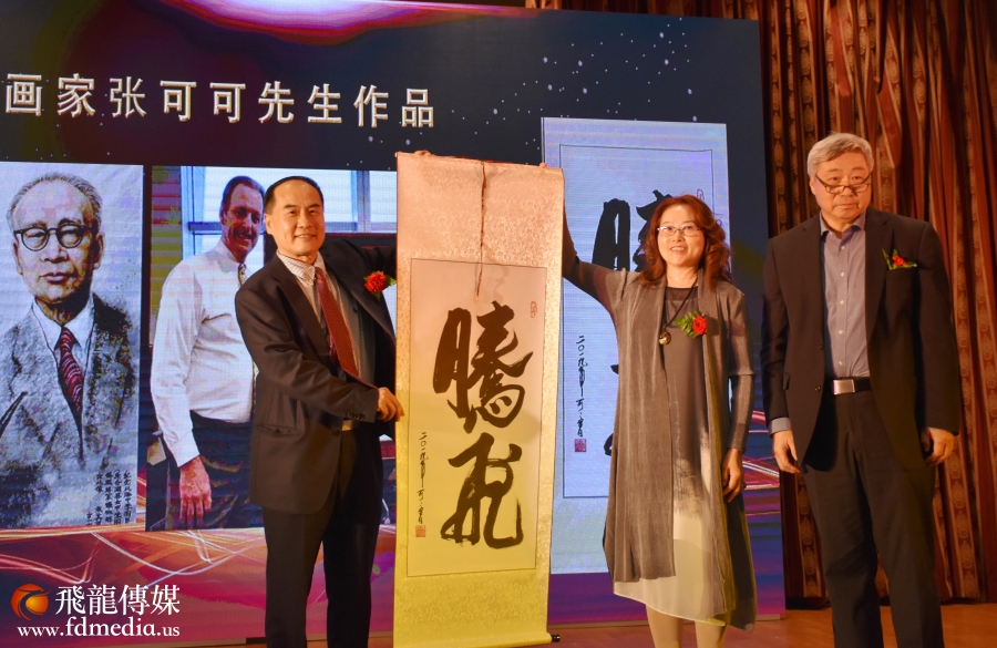 美国著名书家家拉斯维加斯山东同乡会副会长张可可为大会现场挥毫,展示了他的书法艺术。