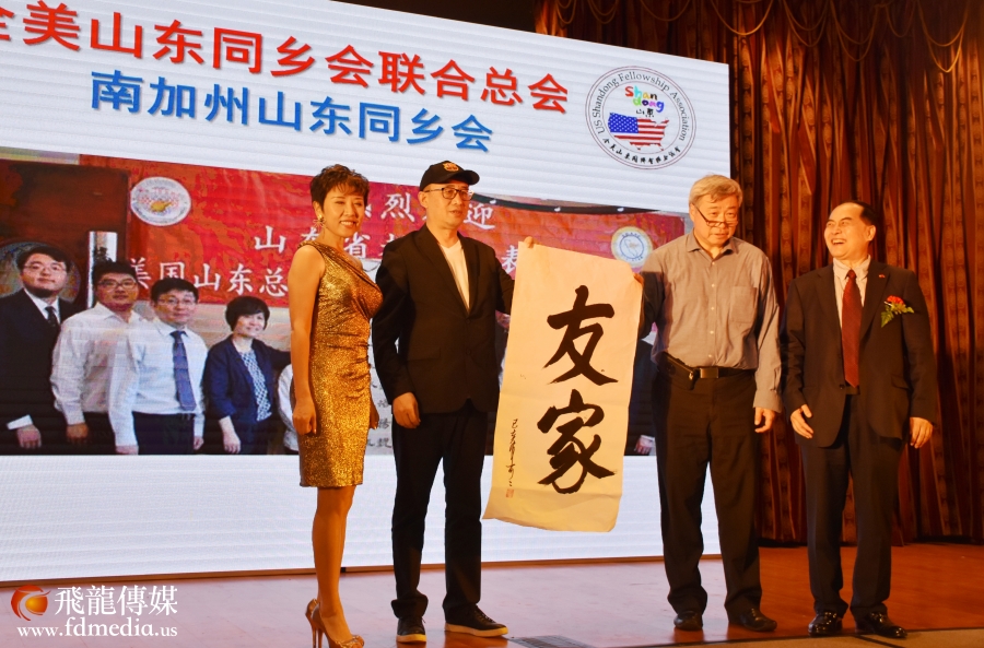 美南山东同乡会会长修宗明祝贺张磊会长。