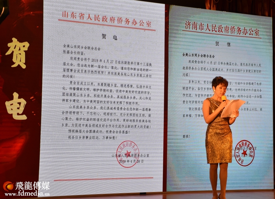 大会开始时,主持人宣读了中国侨联、山东省政府侨务办公室、山东省侨联、山东省海外联谊会和青岛市、济南市、烟台市、潍坊市、东营市等政府侨办给全美山东同乡会联合总会发来的贺信;法国、泰国、澳门、新加坡、澳大利亚、巴西、圭亚那等国家山东同乡会、山东商会也给大会发来了贺信,祝贺大会胜利召开,希望加强两会之间的联系,交流沟通,互利合作,共同发展。 刘凤强会长做总结发言。