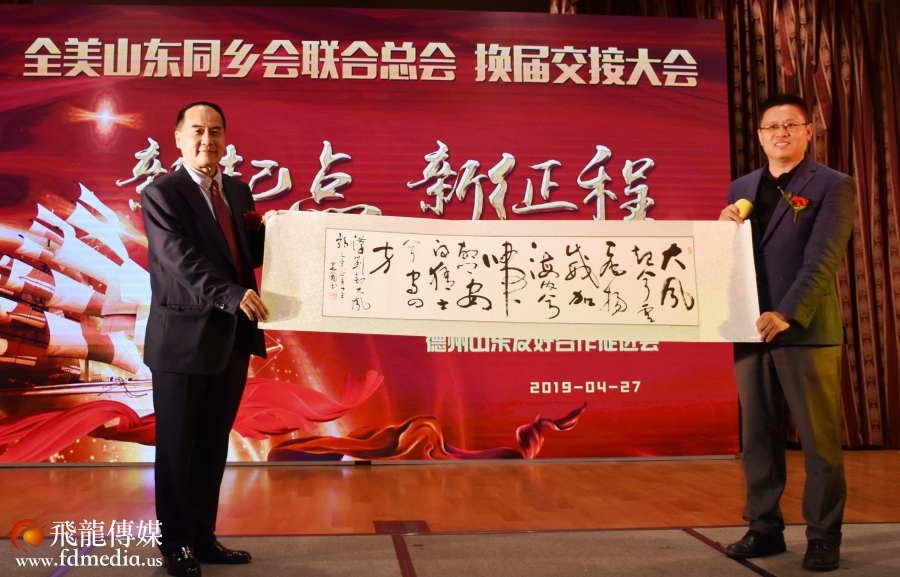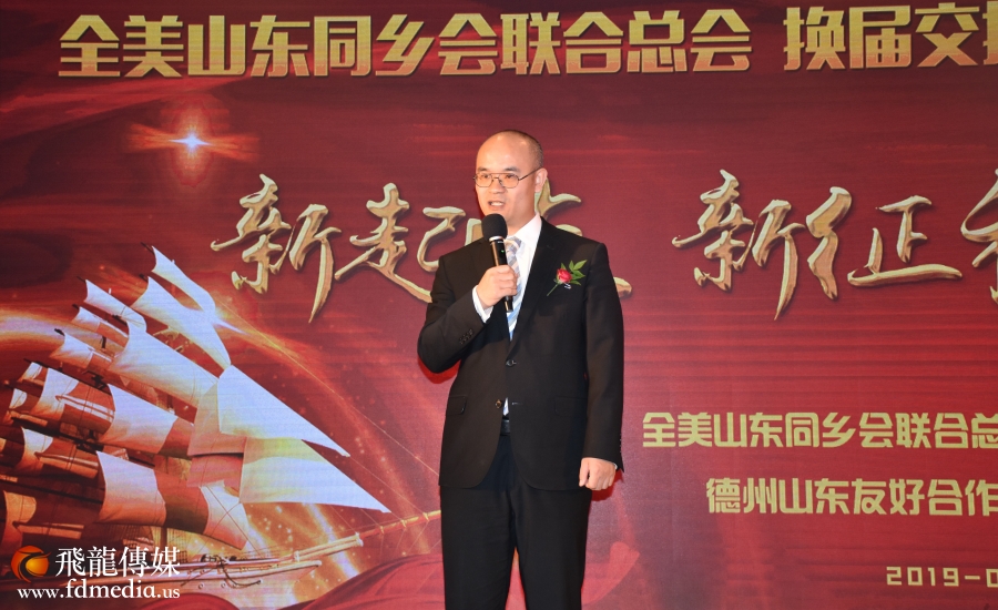 张磊总会长在致辞表示:“接过总会大印,深感责任重大”,他表示一定要发挥自己所长,服务好山东乡亲们,不辜负理事会和15个各州、市山东同乡会会长的信任,带领理事会成员为全美总会的发展做出积极的努力。