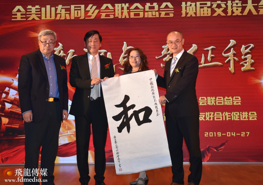 全美山东同乡会联合总会换届交接大会于4月27日在休斯顿中国城珍宝楼海鲜大酒店隆重举行。这是全美山东同乡会联合总会首次在休斯顿举行的重大活动。