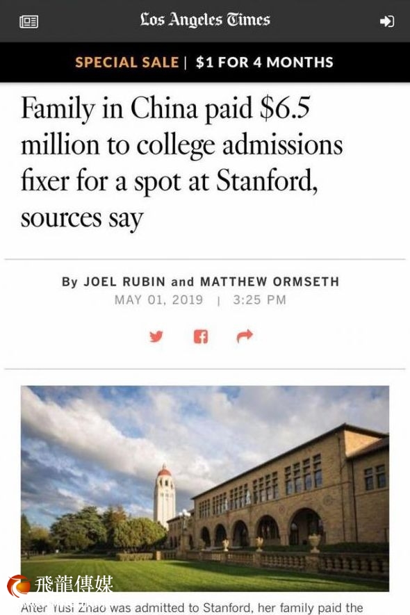 首先,尽管赵涛支付给了辛格650万美元,按照美国媒体的报道和斯坦福大学的说法,这其中只有50万美元是以给学校的帆船队“捐款”的名义给到了学校,而且是在赵涛女儿被录取数月后。