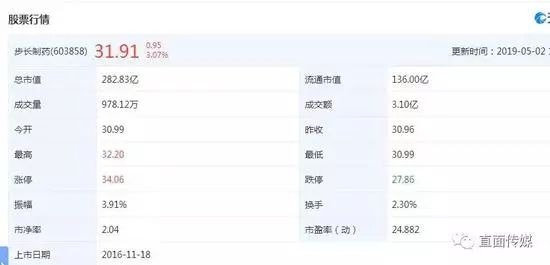 天眼查显示:目前市值282.83亿。赵涛为实际控制人,持有山东步长制药股份有限公司股份比例49.79%的股份。