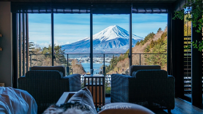 早上拉开窗帘的那一刻,不觉尖叫起来,蓝天与阳光之下,覆盖着白雪的富士山占据了窗外的C位,太惊艳!雪后初晴的天明朗极了,前一天的降雪让富士山的雪顶更加纯白无暇,我想这大概是最好的叫醒服务了吧。这一整天里,视线也再也难以从富士山离开。