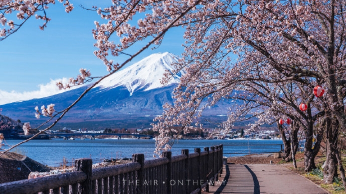 河口湖北岸的樱花要比东京晚三周,当东京的樱花已经纷纷谢幕,河口湖的樱花却刚刚开始绽放。粉色的樱花与雪山同框,简直太美~