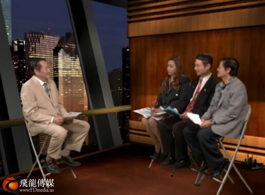 (左起:《现场面对面》主持人 邓润京、德州中国和平统一促进会常务副会长 陈铁梅、休斯顿桥湾社会长&糖城共和党委员浦浩德、休斯顿客家会前会长刘志恒。)