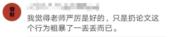 有网友认为,虽然学生答辩准备不充分有错在先,但老师也不应当出言不逊,做出扔论文的举动。