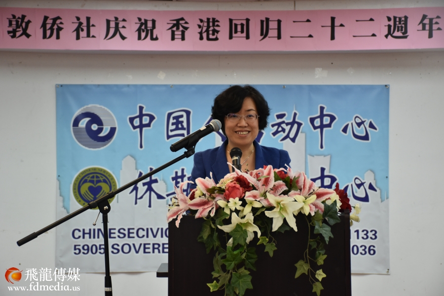 刘红梅副总领事在致词中对香港最近发生的事件缘由做了介绍,同时也对香港百年作了回顾。她说:香港在1840年至1997年这一百五十多年在英国政府的管制中,港督都是英国女王任命的,根据没有选举权。1997年香港回归祖国,香港人才有了做主的权利,选出了自己的特首,实现了港让治港、高度自治。