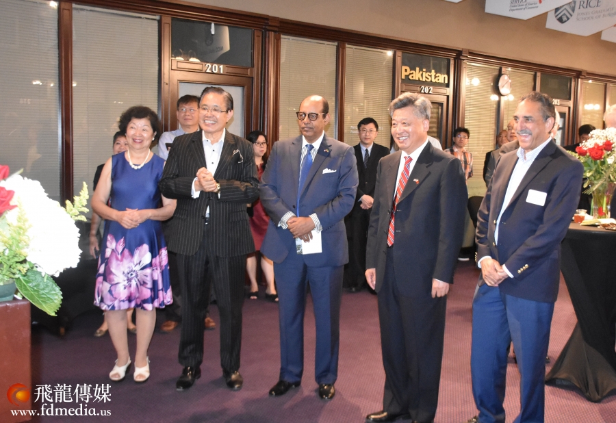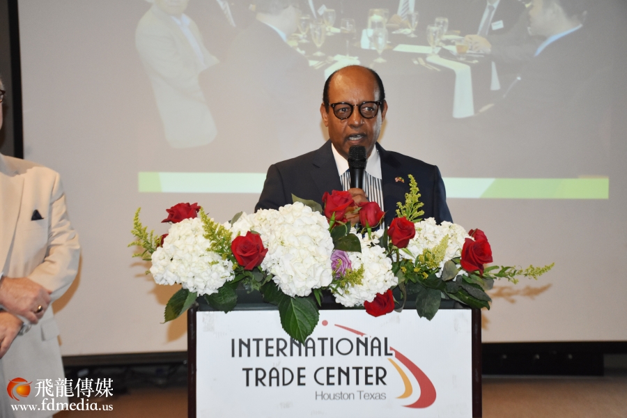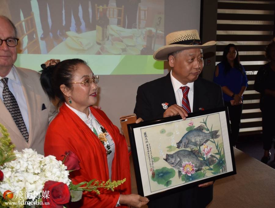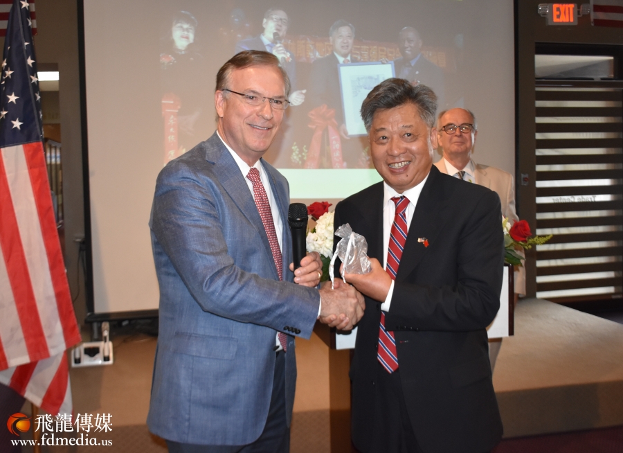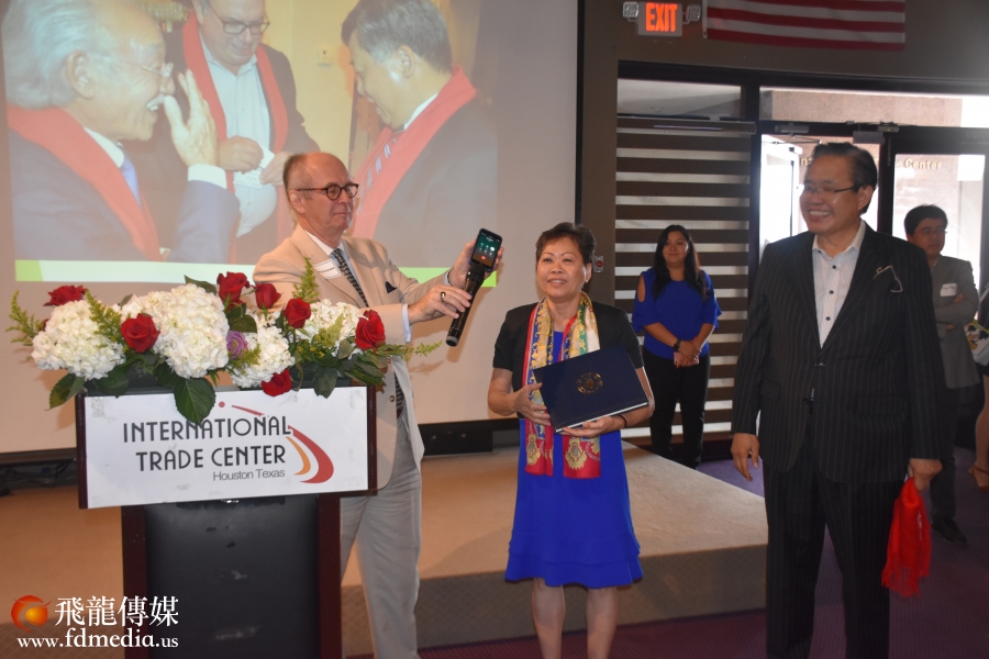 参加话别餐会的有来自休斯敦各族裔社团领袖、政商学界代表200多人,美国国会议员Al Green与李强民总领事是老朋友,他派代表送来褒奖状,国会议员特别从华盛顿打电话到现场,与李强民总领事道别。