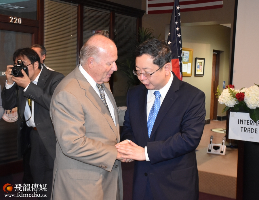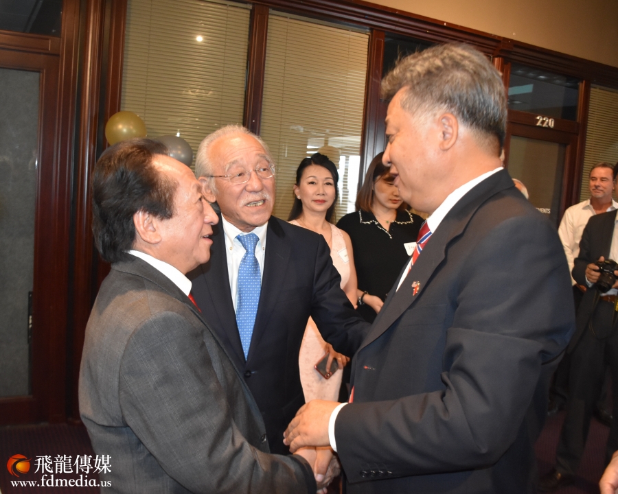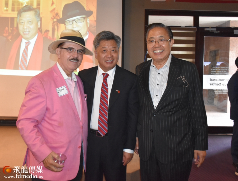 图左: 共和党国会议员候选人吉米.诺维尔、图中:李强民总领事、图右:李蔚华董事长。