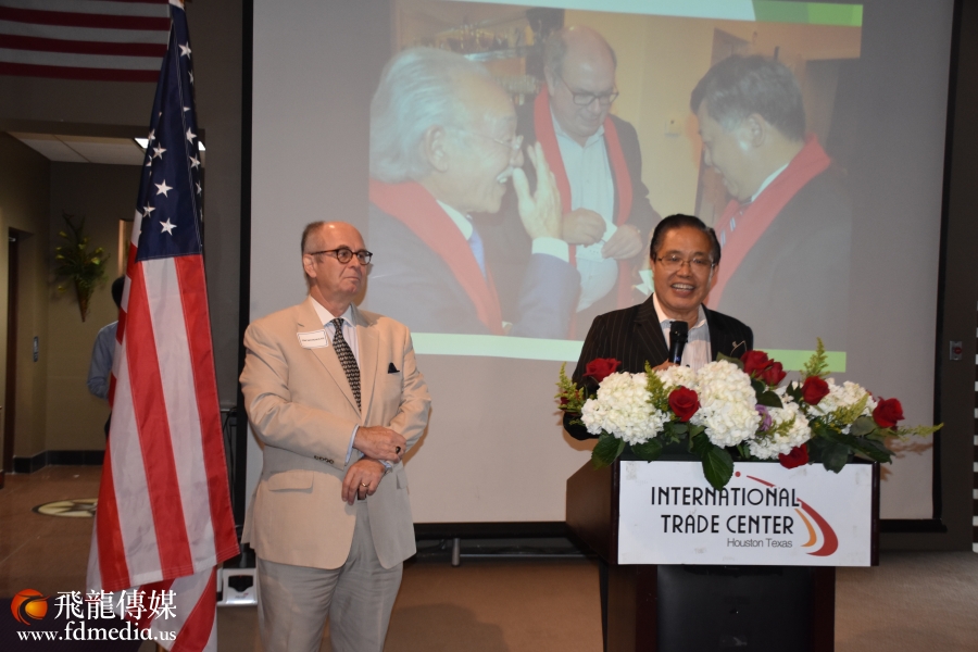 李蔚华董事长致词,他感谢李强民总领事在休斯敦5年来,为融合多元文化,打造和谐社区给予的大力支持!