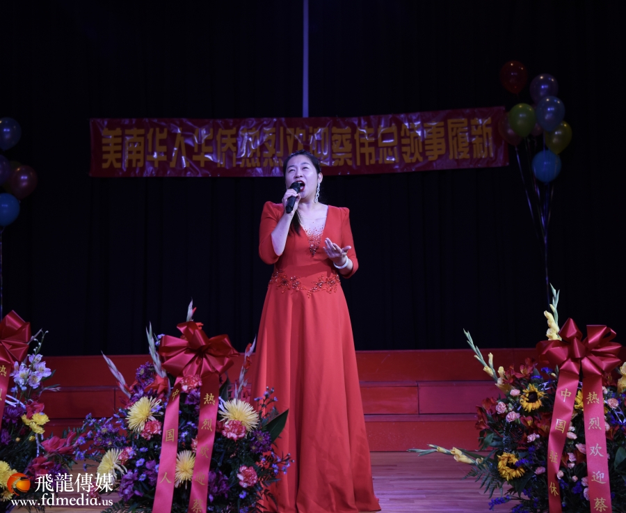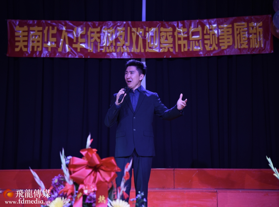 蔡伟总领事上台与大家同唱一首歌。