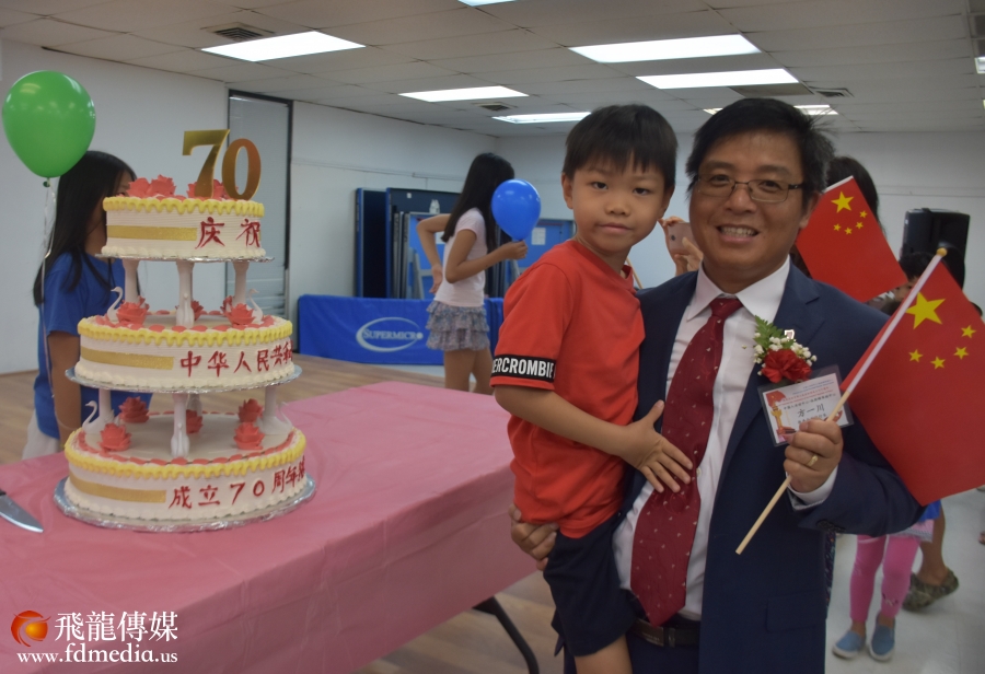 华夏学人协会前会长方一川带儿子来庆祝国庆。