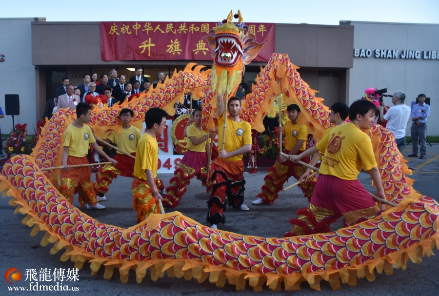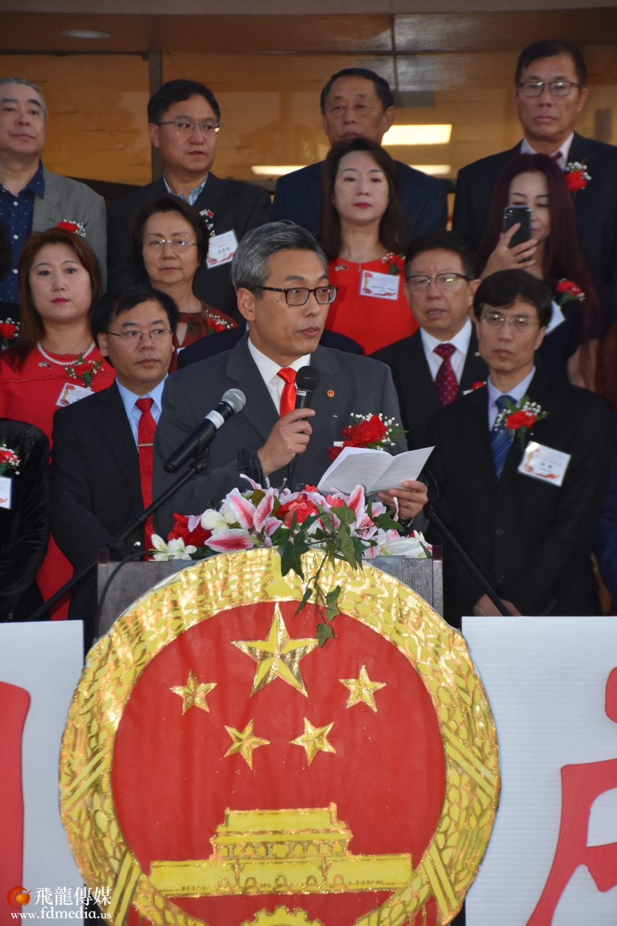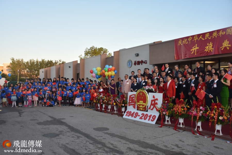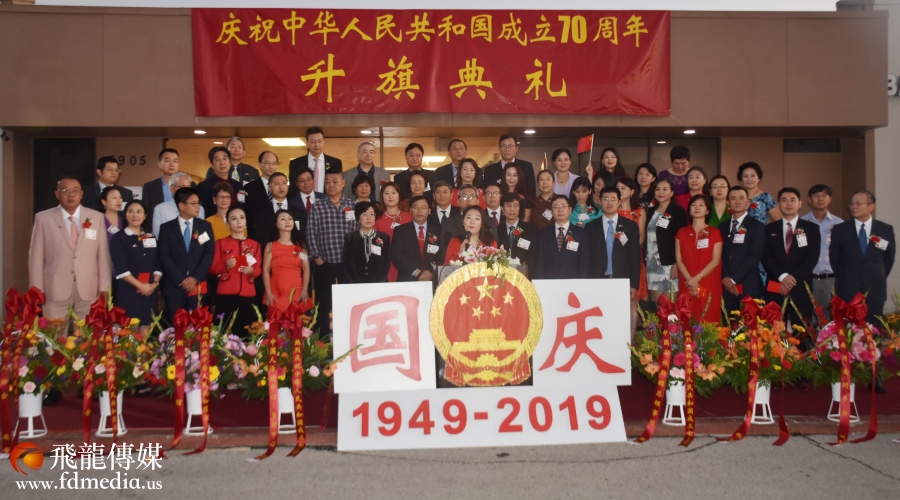 9月28日,休斯敦中国人活动中心携华侨华人社团举行庆祝中华人民共和国成立70周年国庆升旗仪式。中国驻休斯敦总领馆蔡伟总领事亲临现场并致词。