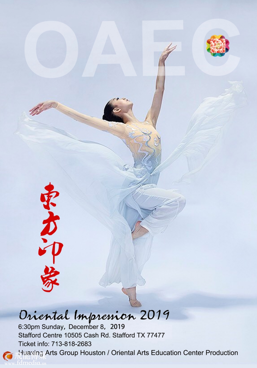 由休斯敦华星艺术团/东方艺术教育中心(OAEC)精心制作的《东方印象2019》大型综艺晚会将于12月8日晚6:30在Stafford Centre 隆重举行。晚会浓缩了2019年度OAEC全体师生的教学成果,内容丰富,编创新颖,独具风格,精彩纷呈。经验丰富配合默契的华星工作团队将在晚会的总体构思,灯光设计、节目串联、背景制作,舞台效果等全方位追求最佳艺术效果,在美轮美奂的舞台上以浓郁的民族风情和极富时尚感的生命力,带给观众又一个全新的东方印象。