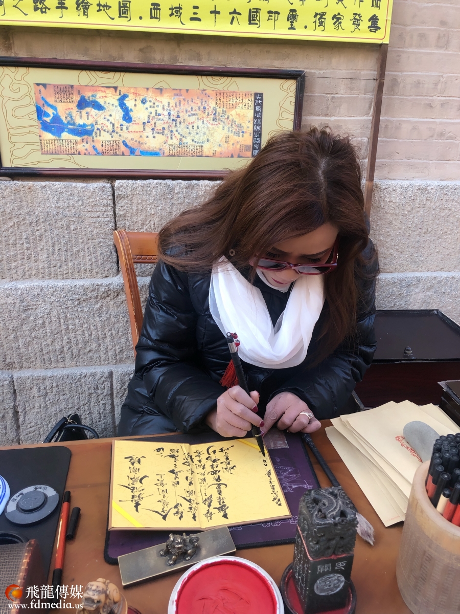 当时的嘉峪关,历史上曾被称为河西咽喉,丝绸之路的商人进入中原需要在这里办入关照,相当于现在的签证,后来人说“请关照关照”就这这么得来的。美国飞龙传媒董事长陈铁梅超越时空亲自体验了一下,办了一个关照带回美国作为纪念。