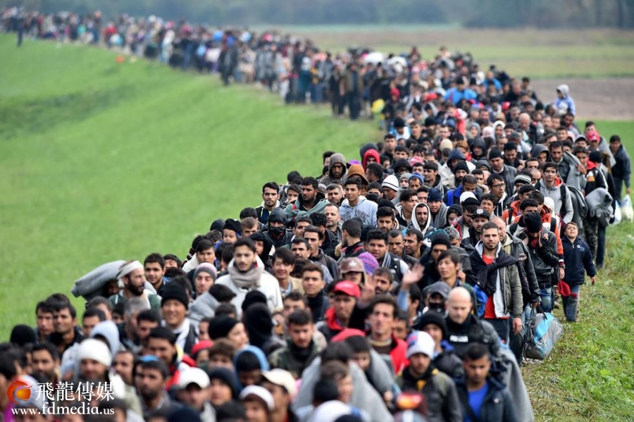 图一:《大西洋月刊》评出了20帧最为震撼人心的新闻照片,图中是2015年10月23日,警察护送难民从斯洛文尼亚的Rigonce村到布雷吉治难民营途中拍摄的照片。数千难民步行穿过克罗地亚和斯洛文尼亚的边界线,当地政府不得不增派警力来应对这场二战以来最大的移民潮。