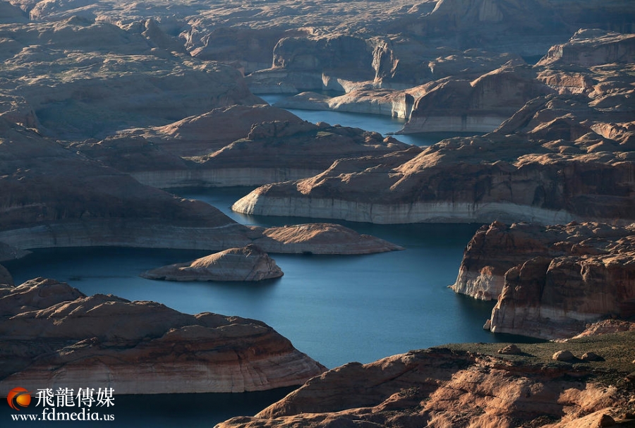 图七:2015年3月28日,美国犹他州鲍威尔湖的岩岸上“浴缸圈”的痕迹清晰可见。这足以说明了美国西部的干旱的严重程度,鲍威尔湖和米德湖是科罗拉多流域的两大天然蓄水池,而现在鲍威尔湖的水储蓄量只剩了45%。