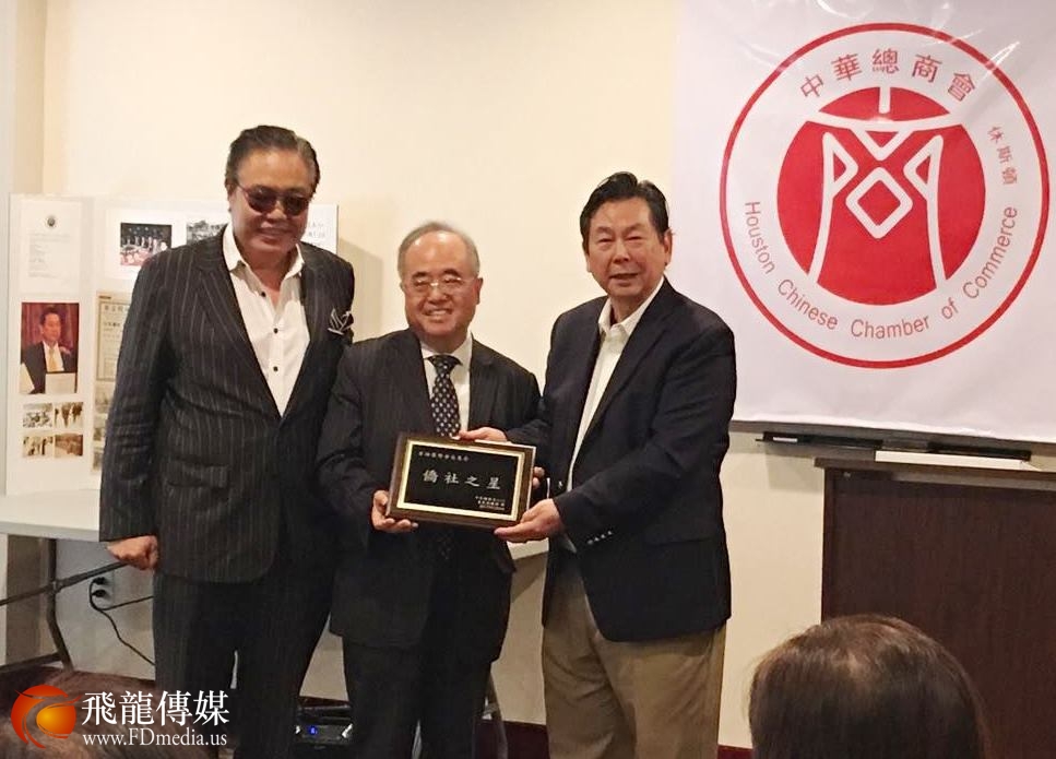 Kenneth Li 李雄 荣获“华人之星”称号。(图左起:美南报业集团董事长李蔚华、李雄、孙铁汉)