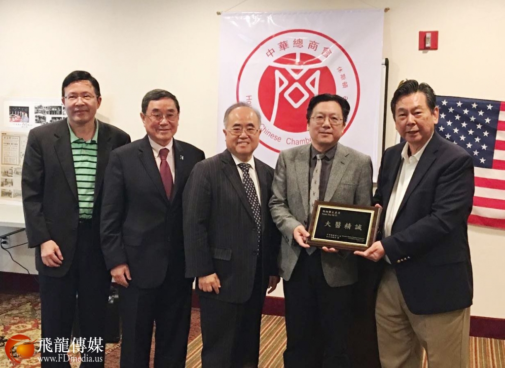图左起:企业家Daniel Yeh 叶博士、休斯顿大商会沈健生、德州地产李雄、免疫科专家陶翔博士、中华总商会会长孙铁汉。