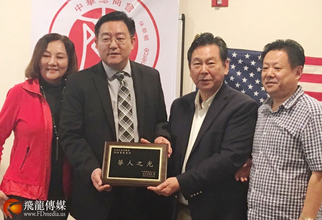 著名传染病专家马欣博士荣获“华人之光”称号。(图左起:Lisa Liu、马欣博士、孙铁汉会长、房文清会长)