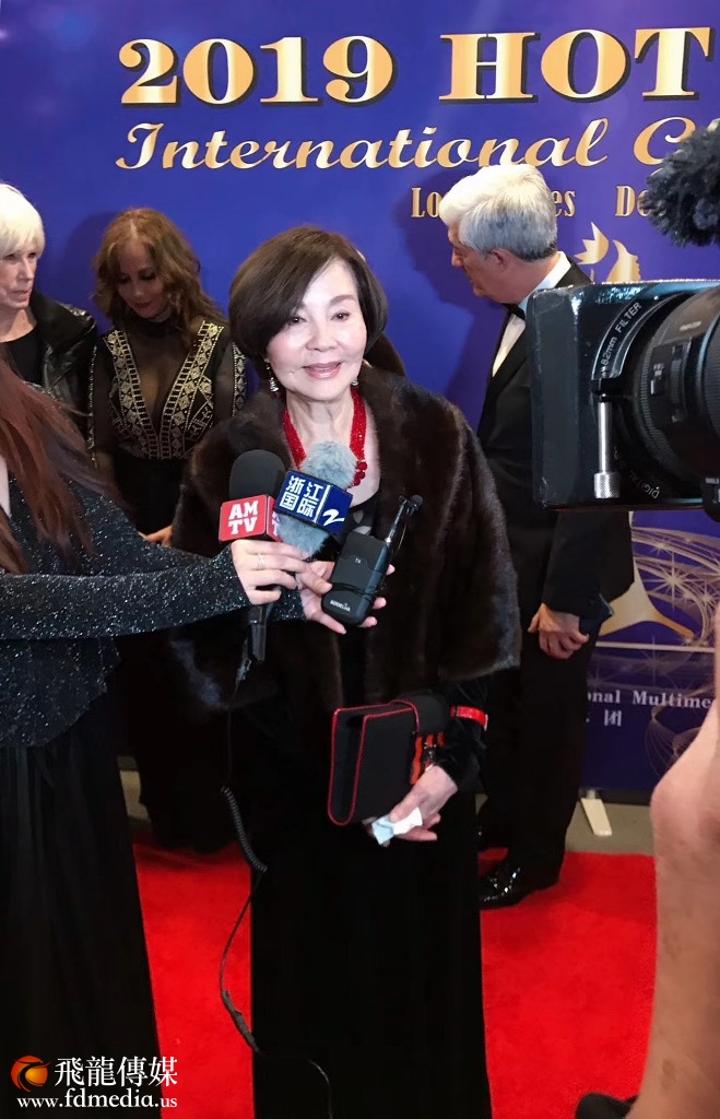 HOT MAMA大赛创始人、全球主席陈铁梅女士在红地毯接受记者采访。