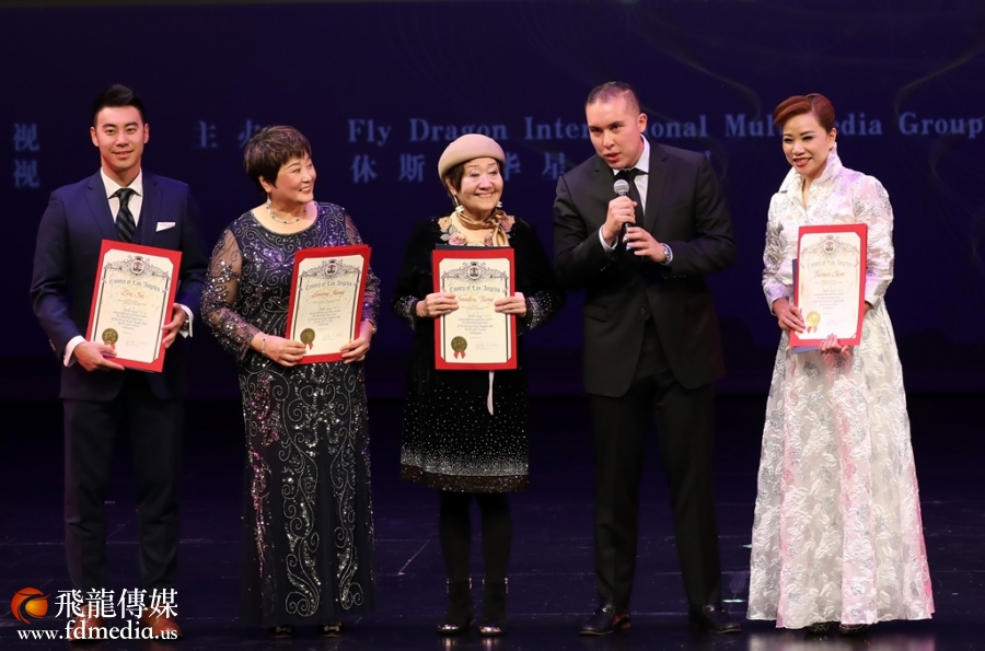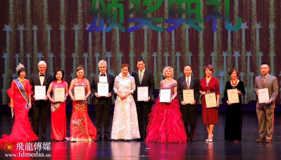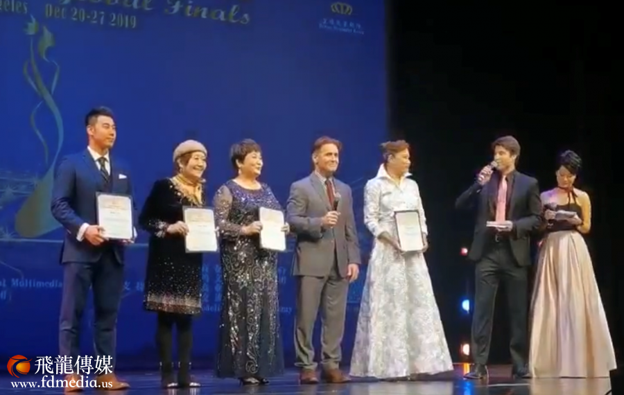 汉天卫视董事长李冀先生与杨敦平导演为团体冠军,来自洛杉矶的团体组颁奖。