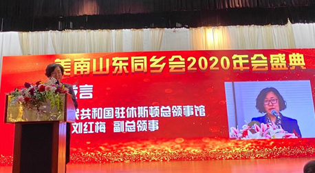 中国驻休斯敦总领馆刘红梅副总领事代表总领馆发表贺词,祝贺美南山东同乡会成立40周年并对山东同乡会在过去40年中取得的卓越成绩进行了高度赞扬和肯定。